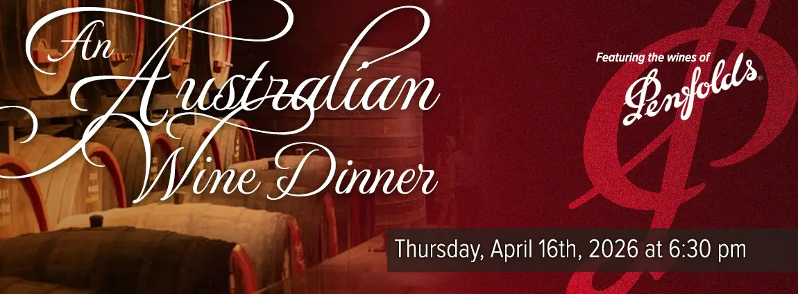 Join us on Thursday, April 16, 2026, for an extraordinary Australian–American Wine Dinner featuring the iconic Penfolds Winery.