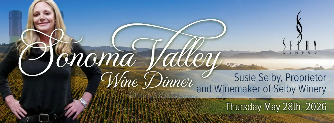 Join us on Thursday, May 28th, 2026, as we kick off Memorial Day Weekend with a special Winemaker Dinner featuring Susie Selby, Proprietor and Winemaker of Selby Winery.