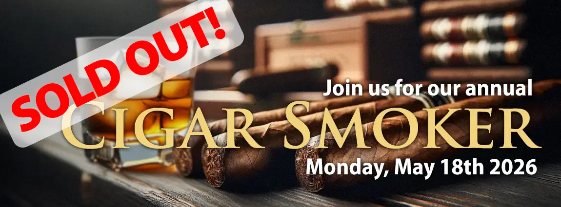 The 33rd Chez François “Smoker” will be held on Monday, May 18th, 2026, commencing at 6:00 p.m. and finishings at 10:30 p.m.